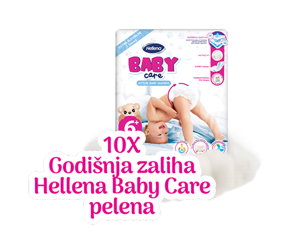 Kupovinom jednog ili više artikala Hellena Baby Care pelena ili gaćica, ostvaruješ pravo na učešće u nagradnoj igri i možeš osvojiti jednu od vrijednih nagrada.